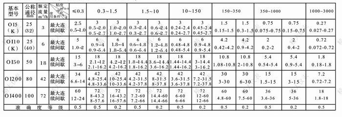 備注:1.測量冷水的流量范圍,連續運行時大流量取0.3-1.5mPa.s欄中最大流量的50%;最大流量取欄中最大流量的70%;