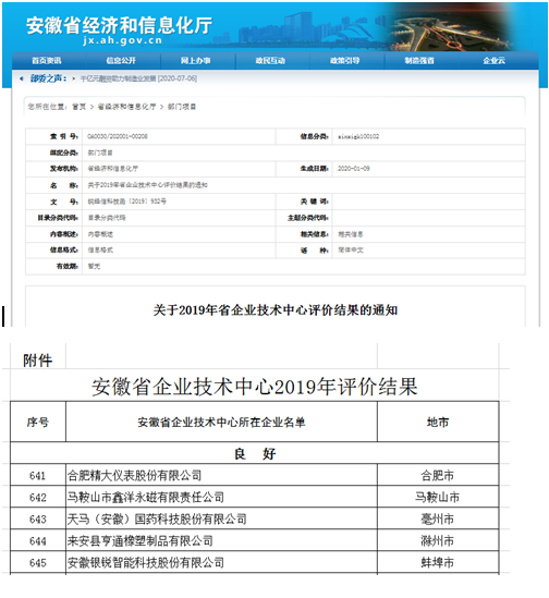 根據《安徽省企業技術中心認定管理辦法》(皖經信科技〔2018〕46號)等相關文件,合肥精大儀表股份有限公司通過了2019年度省級技術中心認定。