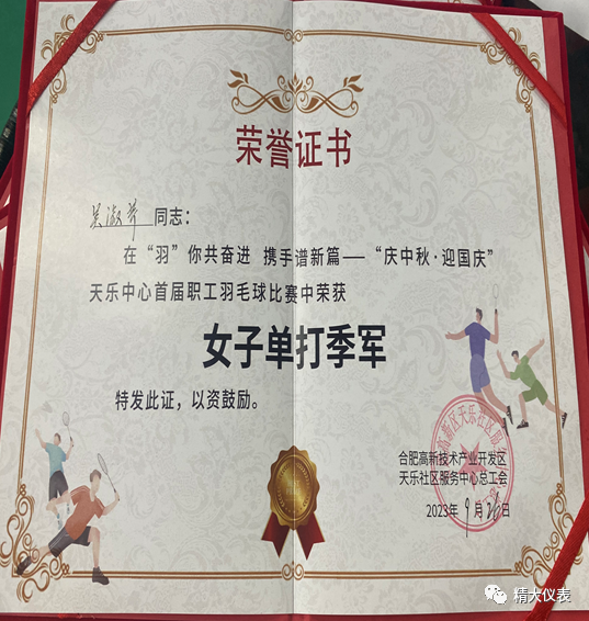 熱烈祝賀我公司職工吳淑芹獲得天樂(lè)中心首屆職工羽毛球比賽季軍
