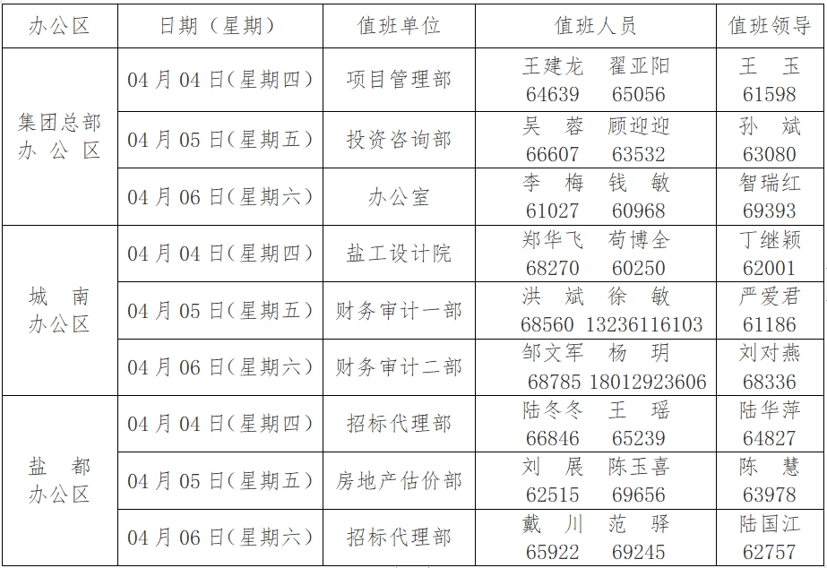 附件:集團(tuán)2024年“清明節(jié)”假期值班安排表