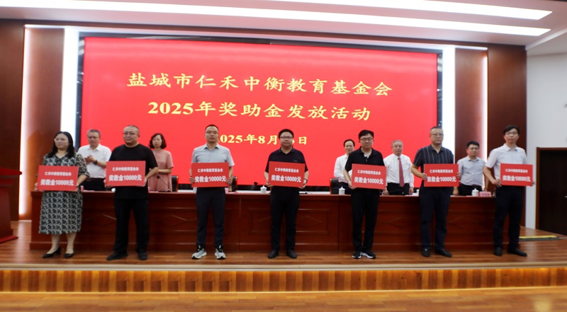 鹽城市仁禾中衡教育基金會(huì)舉行第四屆 “獎(jiǎng)助金”暨射陽(yáng)中學(xué)助學(xué)專項(xiàng)資金發(fā)放儀式